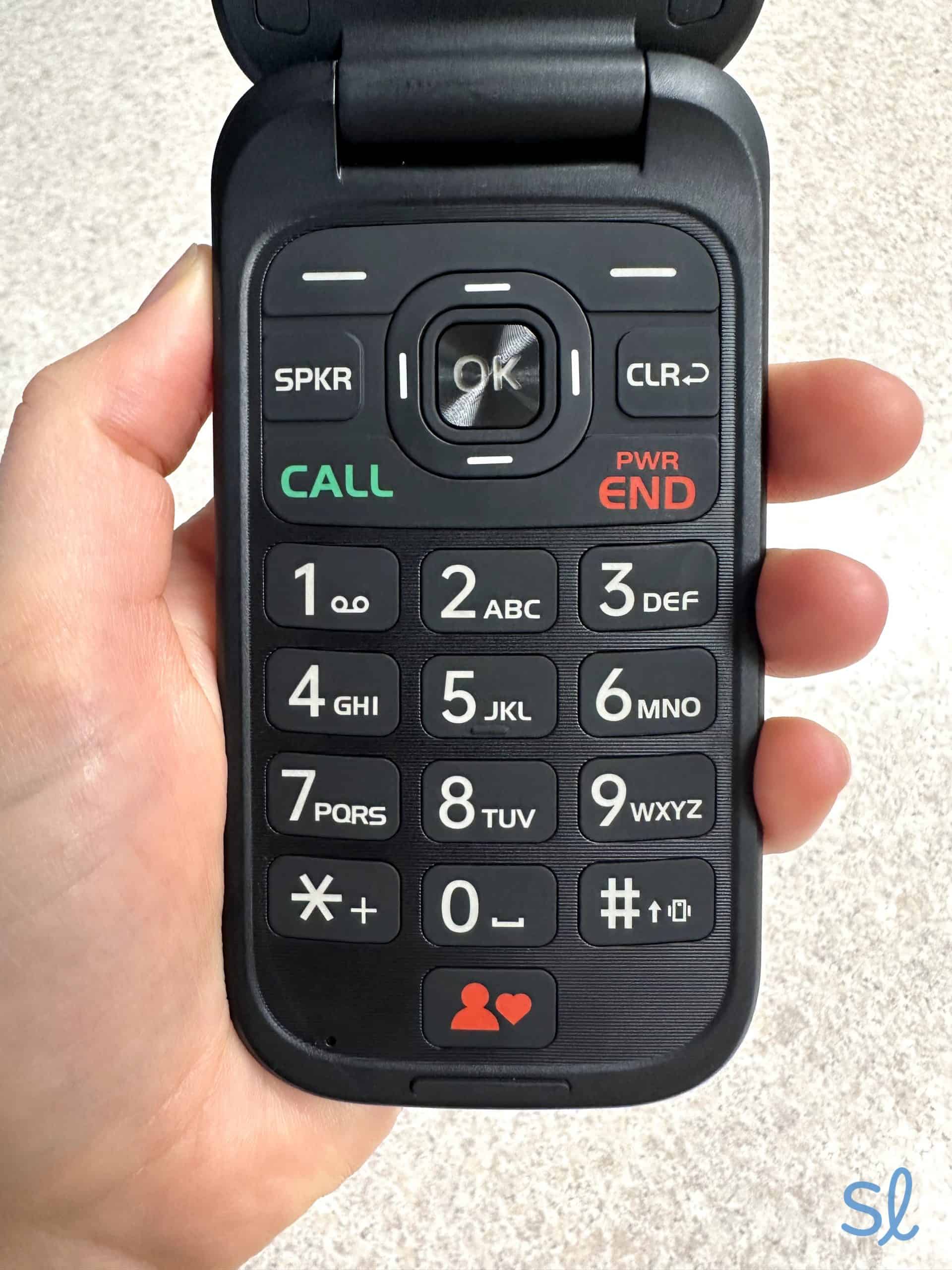 We liked the big “CALL” button that makes it convenient to call your family and friends. There is also a dedicated “SPKR” (speaker) button, which makes it easy to activate the speakerphone while on a call. Another great feature for seniors is the symbol to the left of the speaker button of a person and a heart. When I clicked this button, it immediately brought up my favorite/emergency contacts.