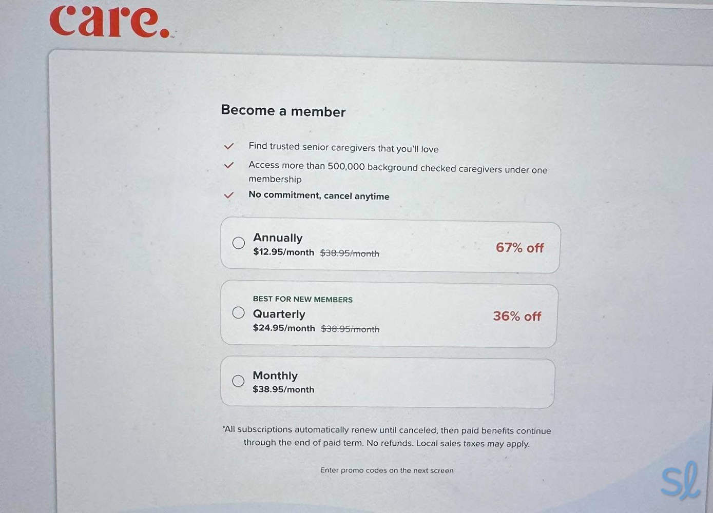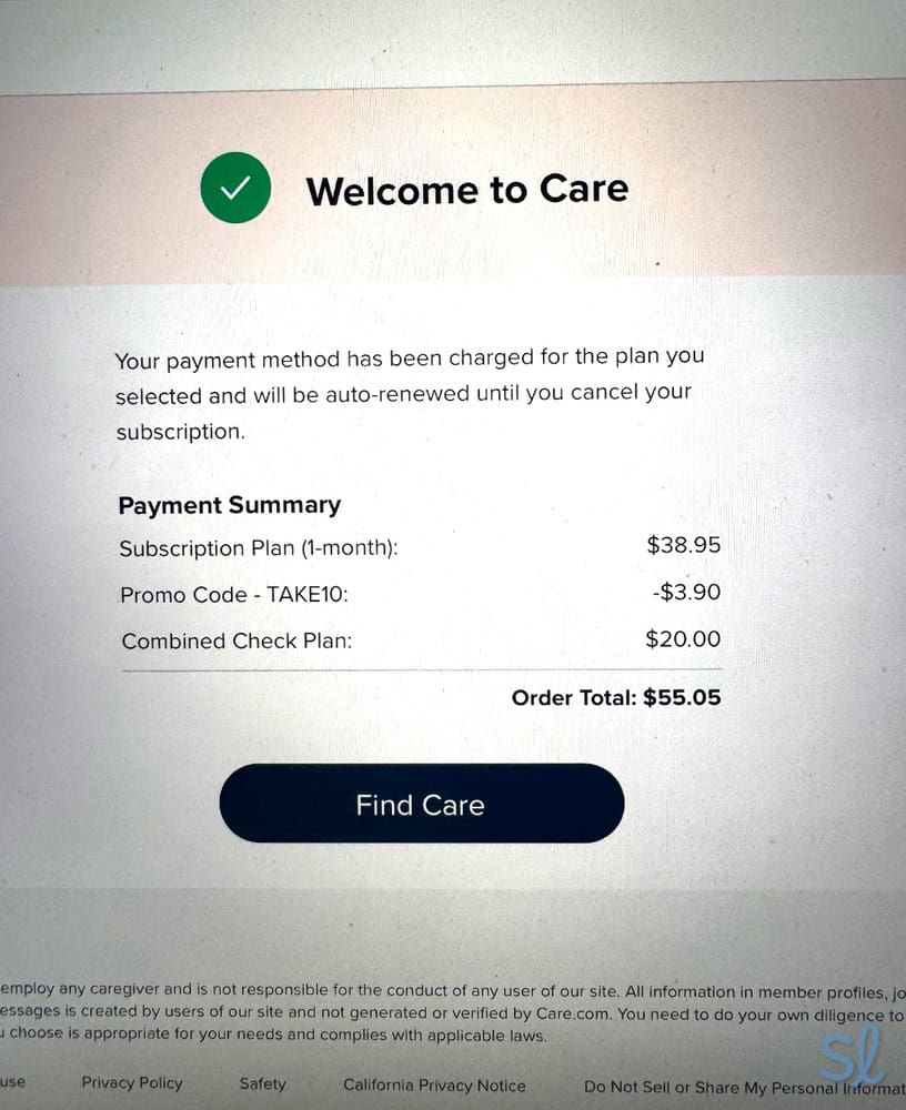 Signing up for my Care.com membership