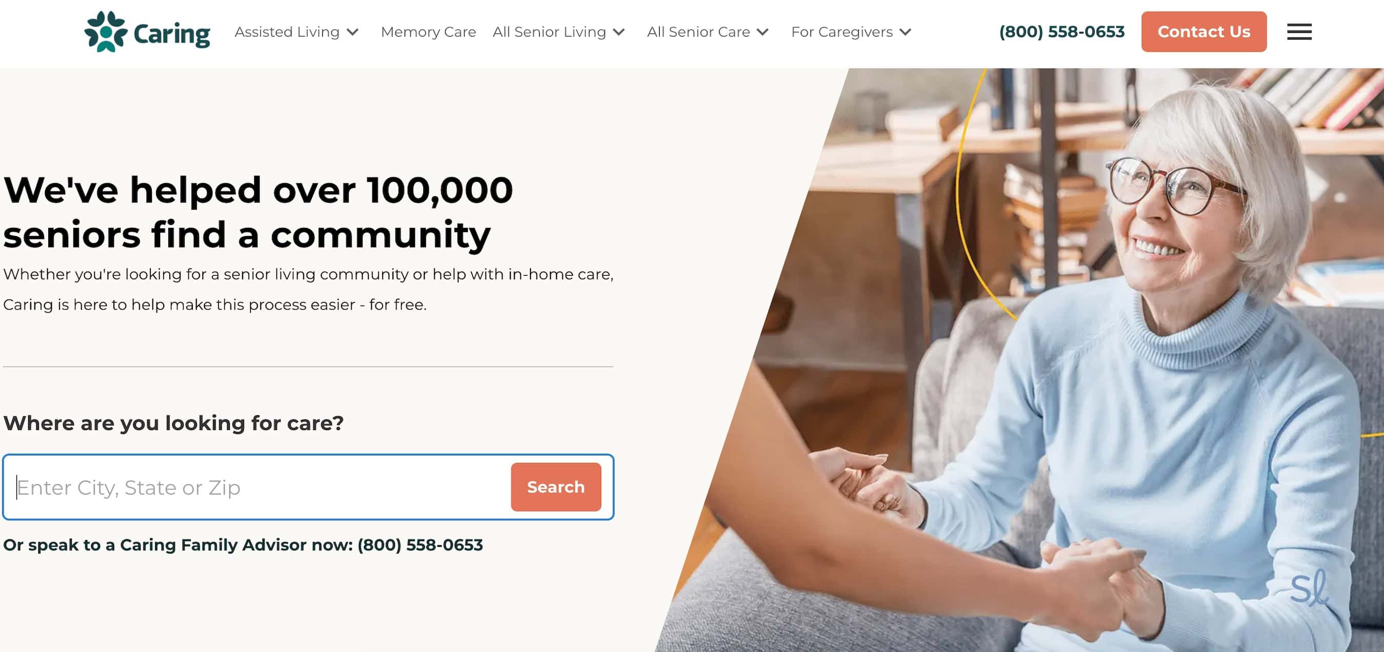 Caring.com's home page makes it easy and clear to start your search