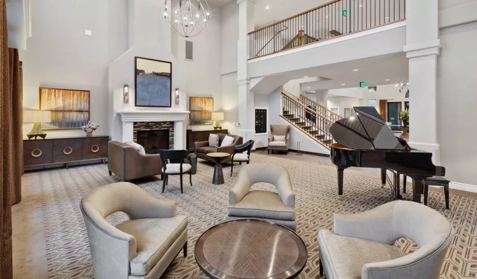 A lounge area for Oakmont residents and guests; Source: Photos – Oakmont of East Sacramento (oakmontseniorliving.com)