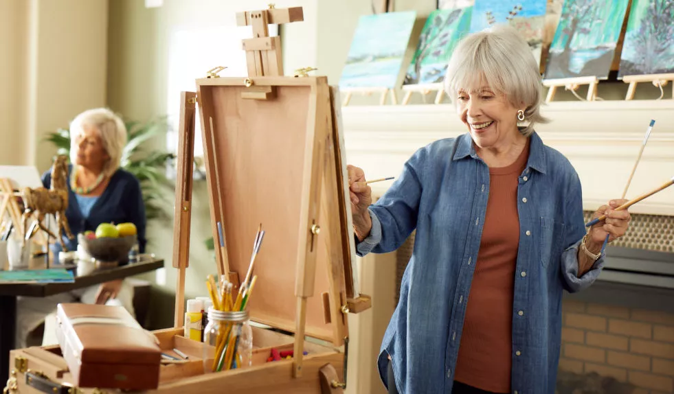 An Oakmont resident enjoys painting; Source: Photos – Oakmont of East Sacramento (oakmontseniorliving.com)