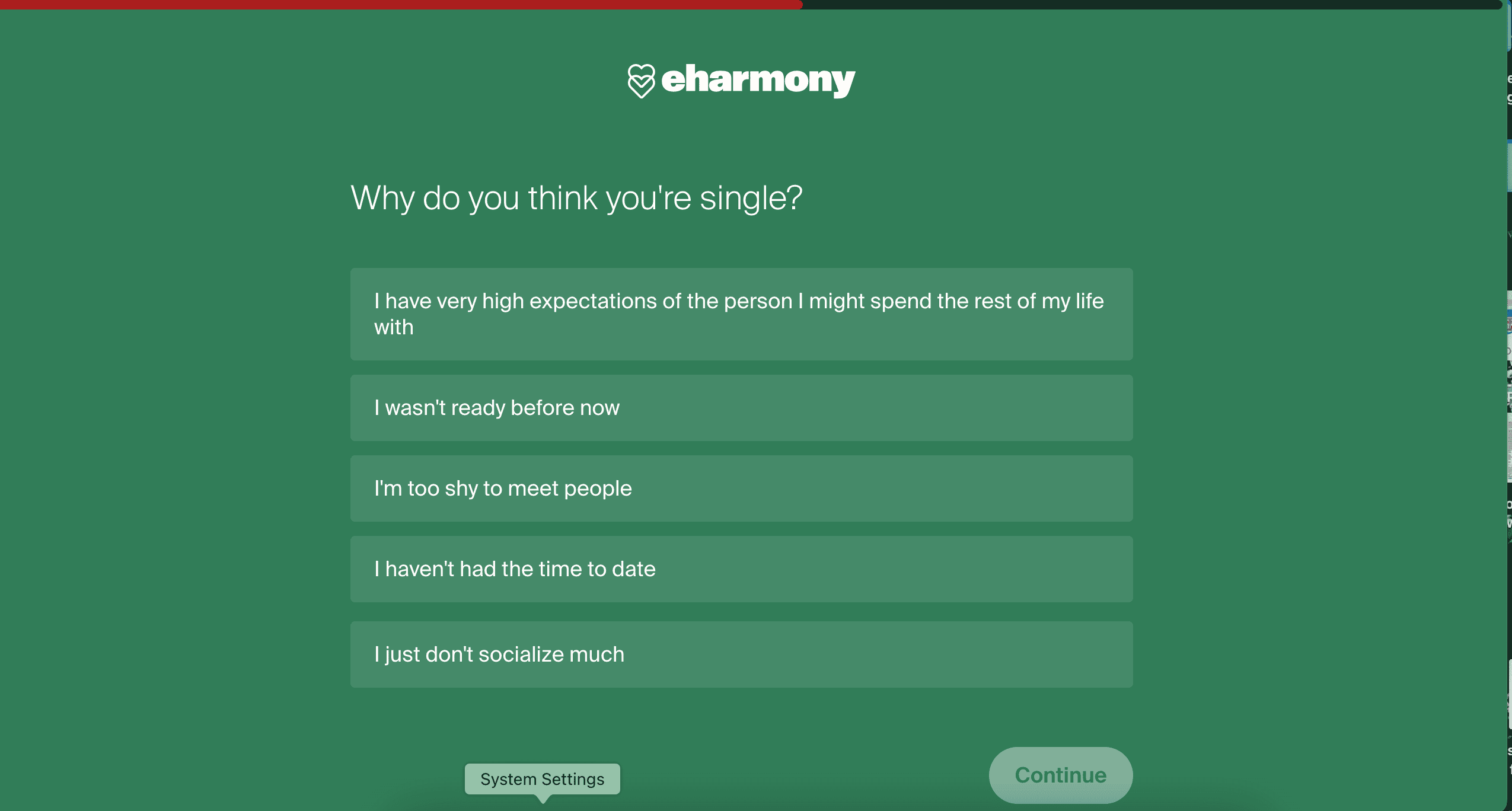 A sample question from eharmony's questionnaire