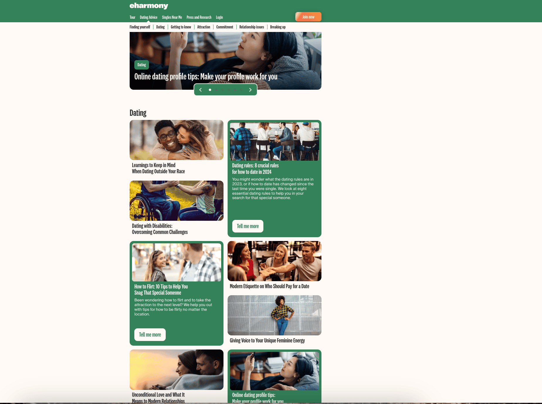 Checking out eHarmony's dating advice section