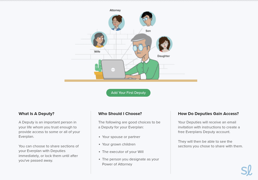 Everplans will ask you to list the most important person you trust, which they call a “deputy.” Then you’re given guidance about how to share your Everplan with that person.