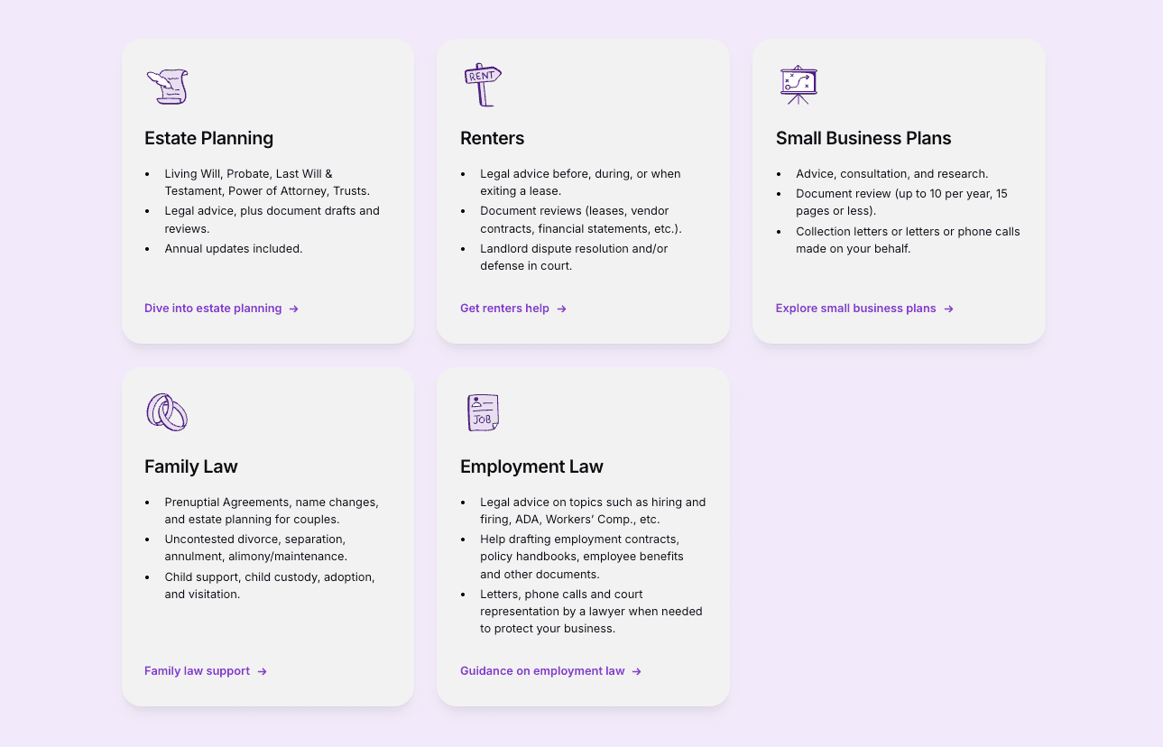 We think LegalShield is ideal for anyone who’s looking for an affordable service but who also wants to access extra support when needed. They offer several plan options for individuals and families. Each plan varies in coverage and the legal services offered.