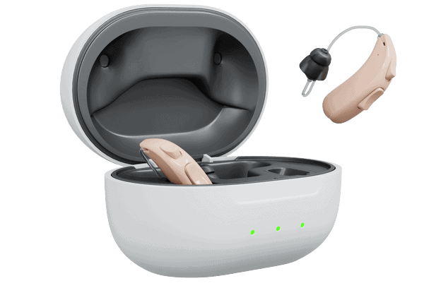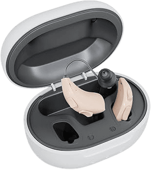 My favorite part about their design is the portable charging case. The charging case holds up to four days worth of charge, so you can easily keep your hearing aids charged during a weekend getaway or camping trip without needing to plug in the case. This is similar to other OTC providers we’ve tested, including MDHearing, which offers charging cases that hold three full charges. To learn more, visit our MDHearing review.
