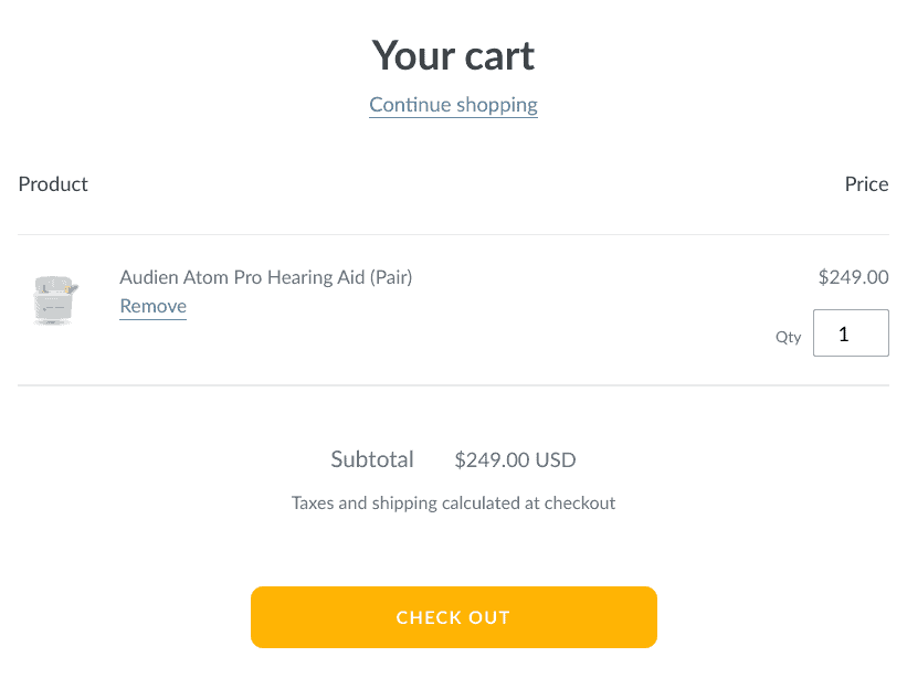 Adding the Audien Atom Pro to my cart. Source: Audien website.