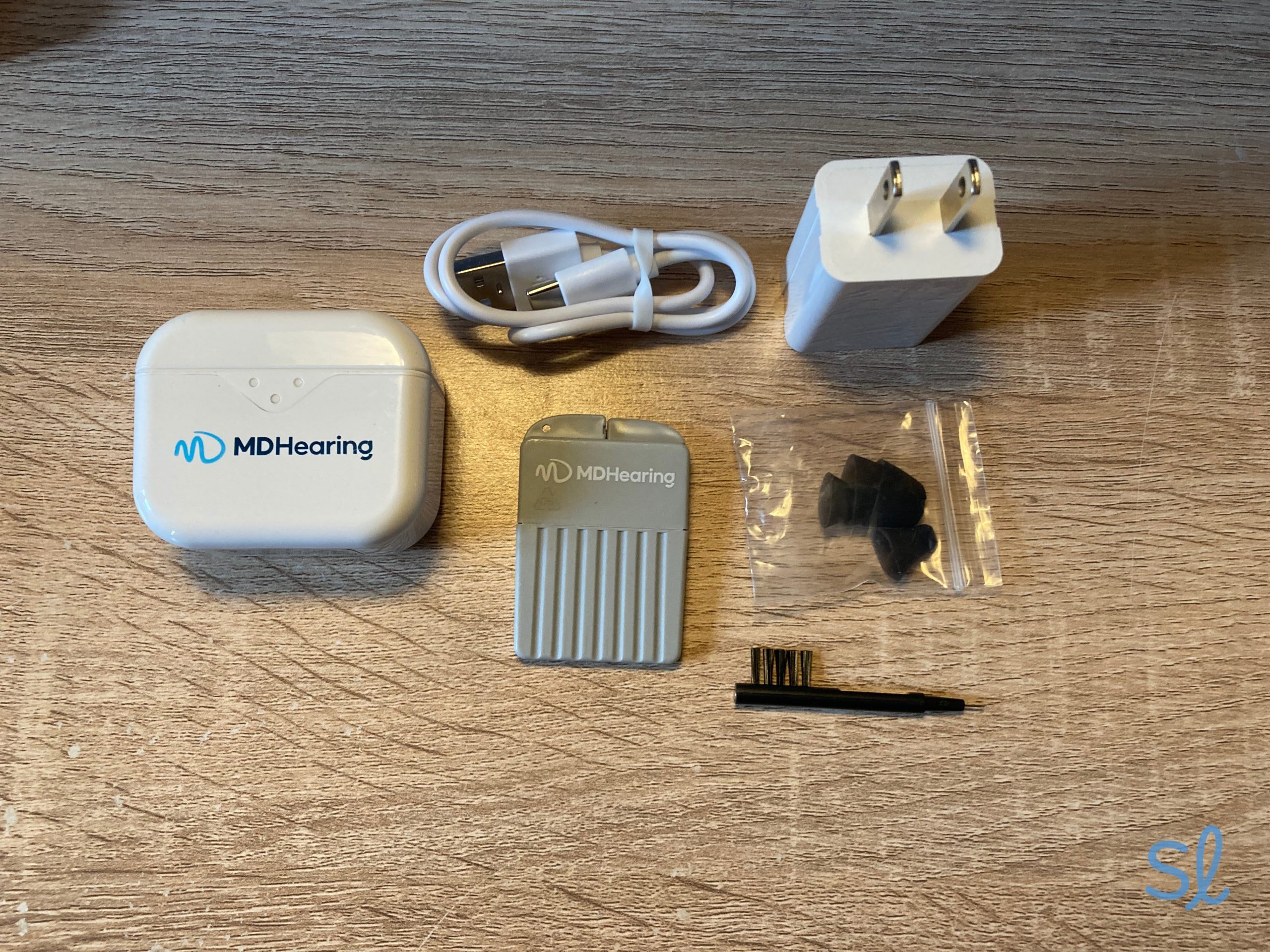 Hearing aids typically come with cleaning tools, as seen in our NEO XS package from MDHearing.