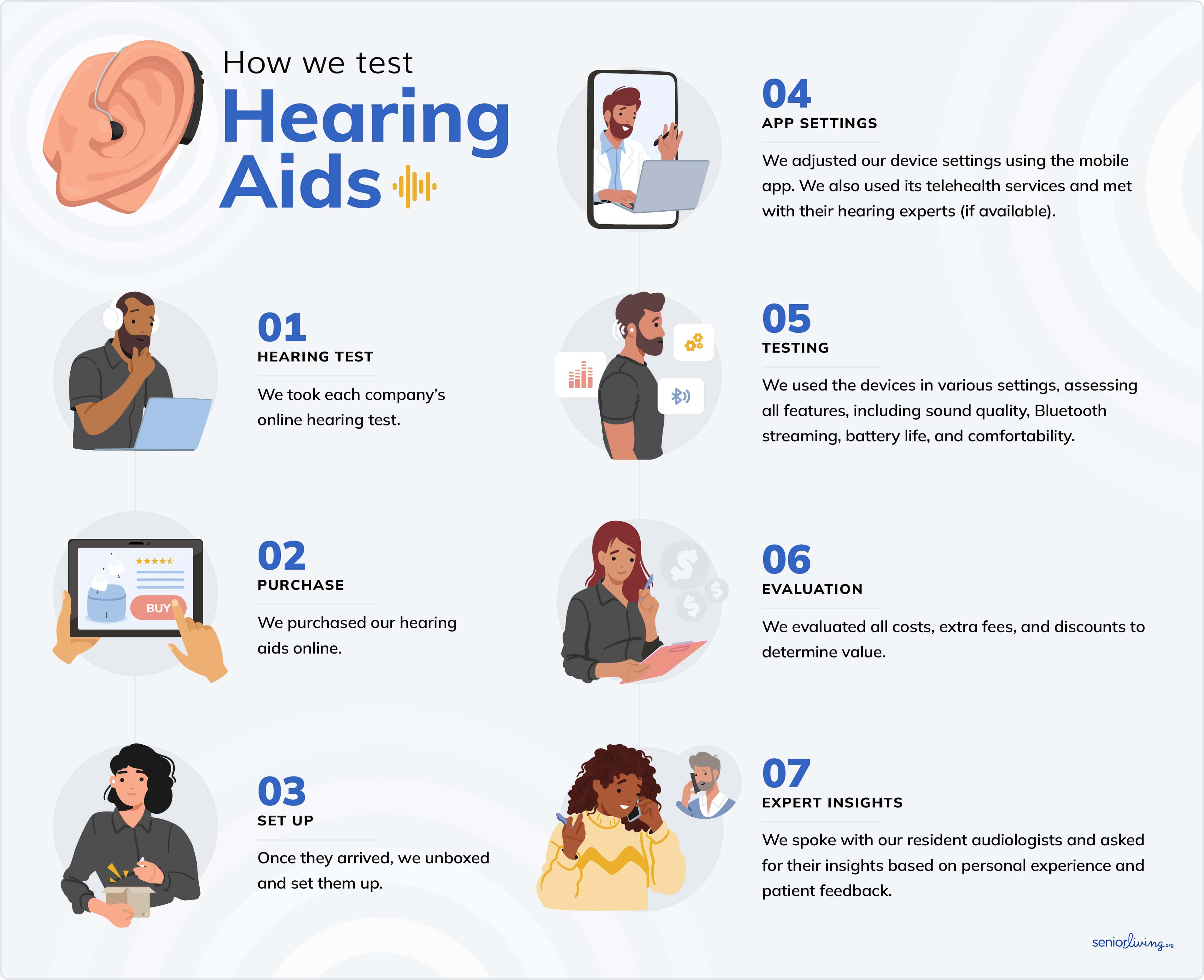 Our tech team tests out the latest gadgets for seniors each year. We’ve logged hundreds of hours testing and reviewing hearing aids from dozens of providers. To ensure the best information, we also work directly with experts such as our resident licensed audiologist, Dr. Ruth Reisman. She has personally tested or prescribed hearing aids from every provider on this list and has given her approval for our top picks.