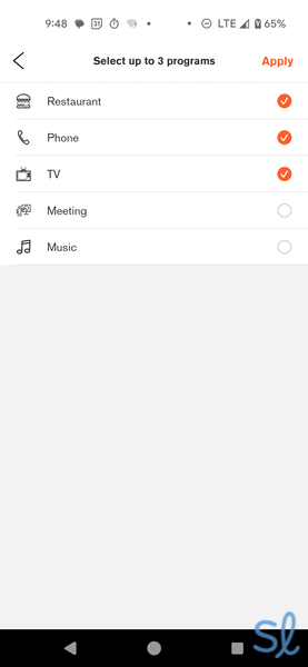 Selecting my preferred programs in the Eargo app