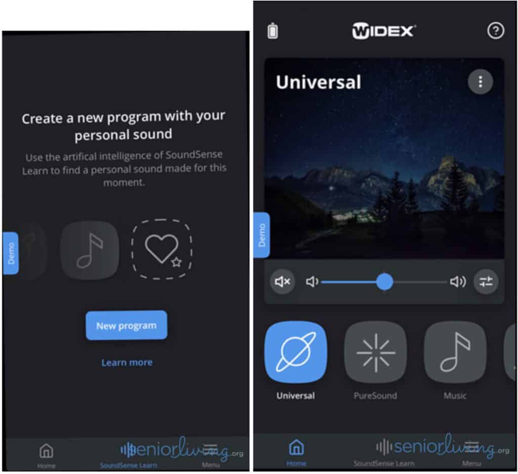 The rest of the Widex line can use the Tone Link App, which communicates to the hearing aids using an ultrahigh frequency chirp. This app provides basic volume, program control, and program selection.