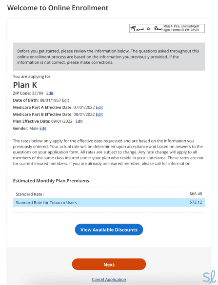 - In the application process, you’ll be asked to supply your Medicare information, the payment details, and confirm other important information. Remember, you can call an agent for assistance at any time. The phone number is listed to the right side on every screen.