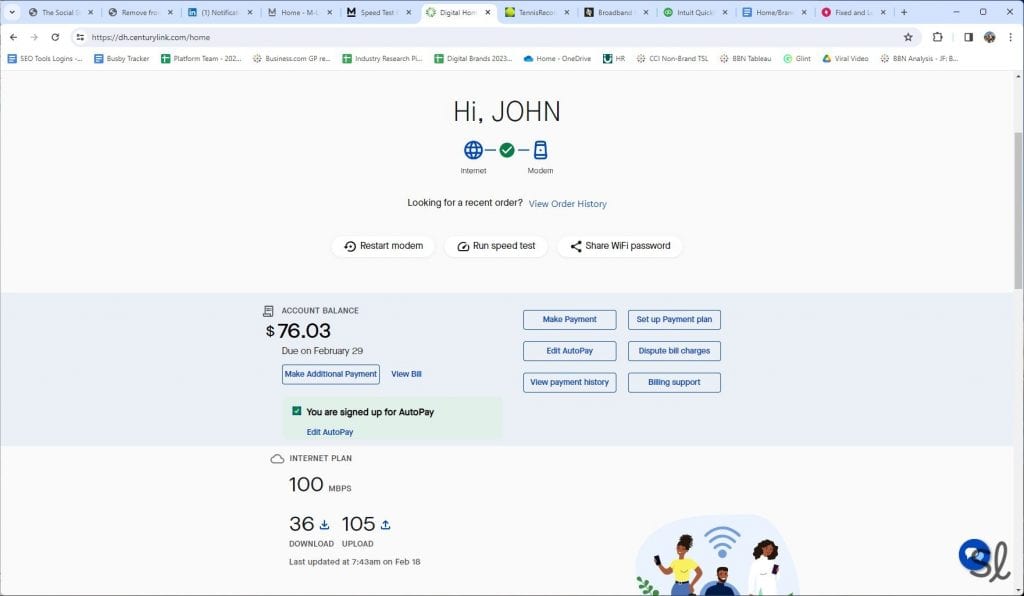 We’re big fans of CenturyLink’s online portal and mobile app. It makes it easy to manage your plan in one place. Using the portal, we could run a speed test, share the Wi-Fi password, restart the modem, and view or pay our bill.
