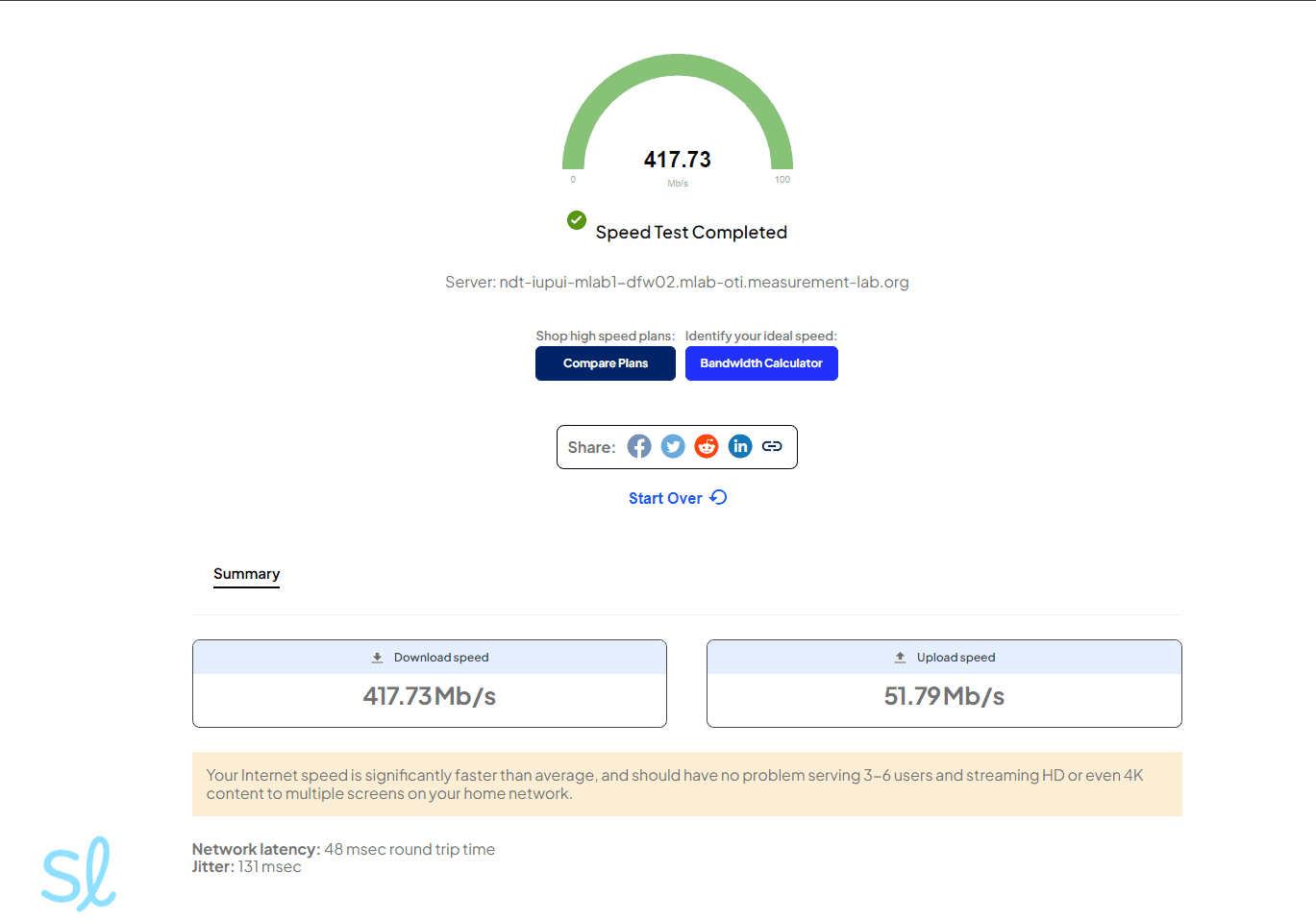- We experienced faster-than-advertised speeds