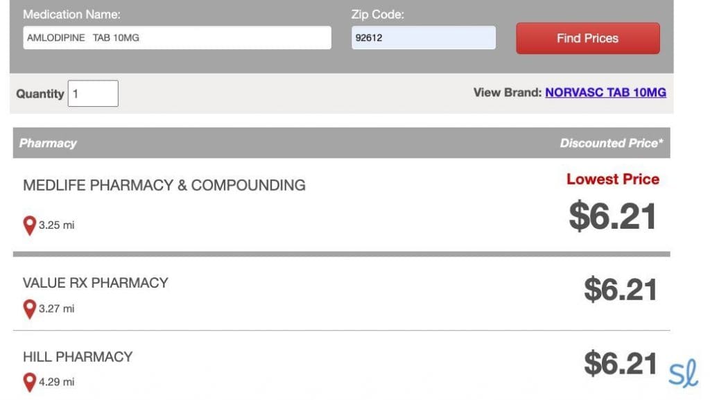 Like nearly every provider on this list (except for GoodRx Gold), Choice Drug Card is 100 percent free. You don’t have to pay anything to enjoy discounts of up to 80 percent. We tried Choice Drug Card by searching the prices in our area for Norvasc (amlodipine besylate), a calcium channel blocker used for high blood pressure. The standard retail price for 30 pills (5 mg) is around $30, but prices can vary substantially based on your location. We found prices as low as $6.21, giving us a 79 percent discount on the medication! That exceeded our expectations and beat out many other providers, including WellRx and SingleCare.