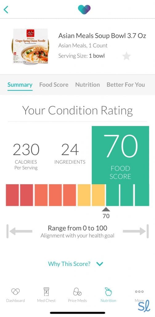 One of our favorite things about WellRx is the mobile app. It has lots of extra features you won’t find with other cards. There is a feature called Grocery Guidance, for instance, where we could scan or search for our favorite grocery items. The app gave us a health rating for each item, along with nutrition information and healthier alternatives if applicable. You can also put all your prescriptions in the WellRx Medicine Chest, which shows all your current medications and any interactions, and lets you set reminders for refills.