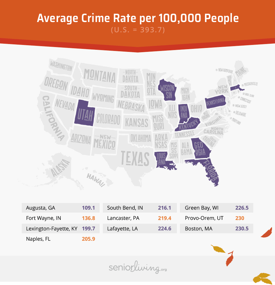 For each city, we calculated a percentage over or under the overall national rate for each category and then averaged each city's over/under percentage to calculate that city's overall average percentage. In this formula, lower numbers are better.