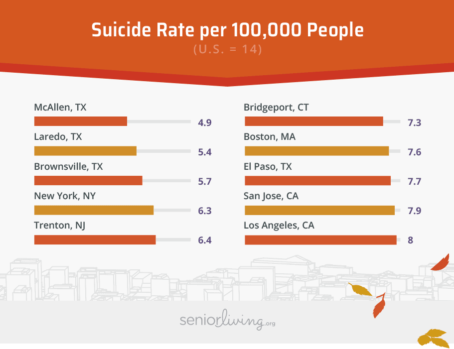 We calculated which cities present the best chances for happiness by gathering data for nearly 1,000 cities across several categories, narrowing the list to about 185 that had consistently available information. We then compared the figures for each of those cities by national rates so that cities with lower percentages boast a better-than-U.S. average situation for each category. To calculate our ranking, we figured an average across all seven categories for each city.