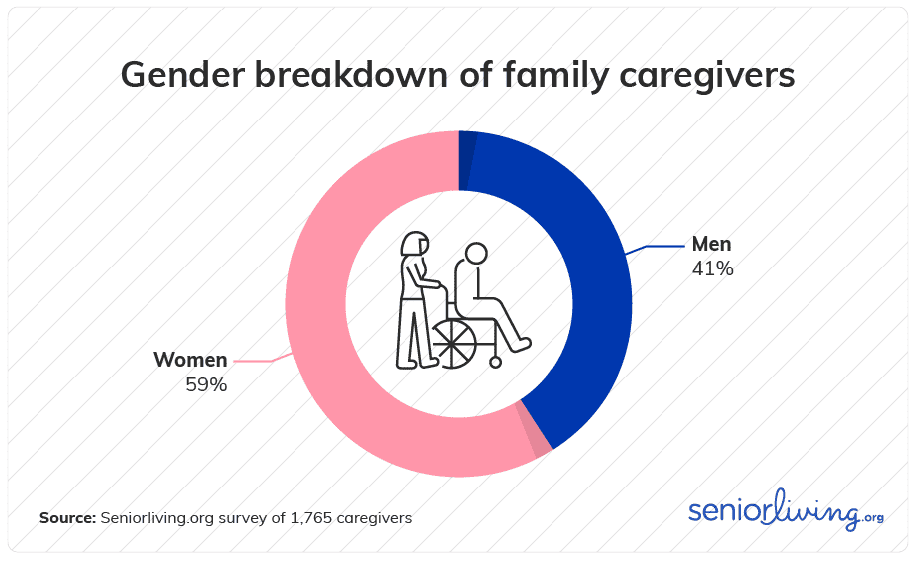 - 59% of family caregivers are women, and they report higher levels of emotional stress, depression, and challenges with balancing caregiving duties compared to men.