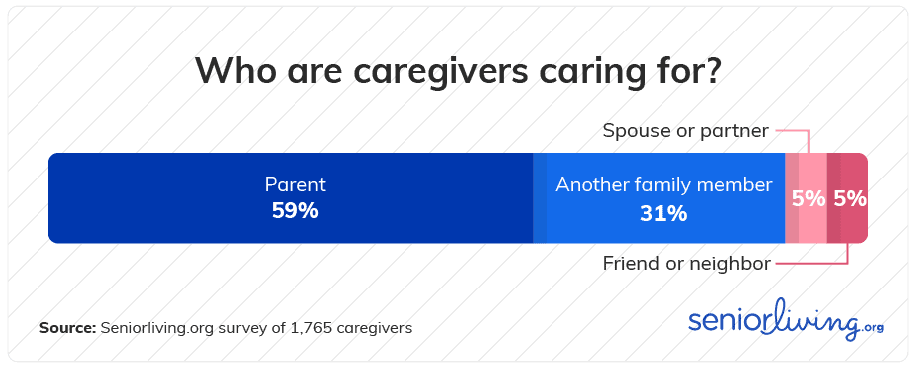 Nearly 60 percent of caregivers in our survey cared for a parent while caring for a spouse, friend, or neighbor was much less common.