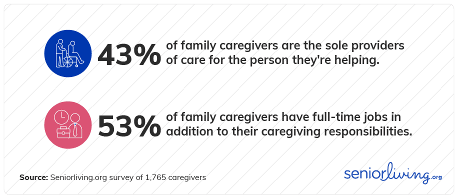- 53% of family caregivers work full-time jobs, meaning they must balance their caregiving and workplace responsibilities.