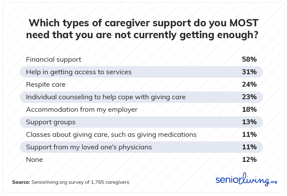 - Nearly half (47%) of caregivers receive no formal support, such as financial aid, counseling, or respite care, despite 88% saying they need more help.