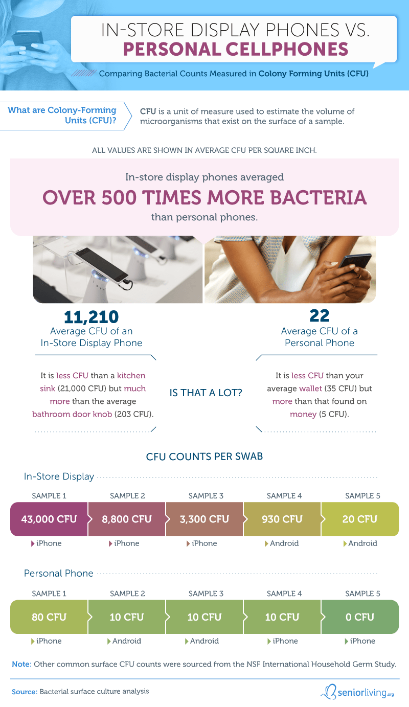 There are ways to avoid making contact with germy surfaces during your next trip to a public restroom, and we suggest keeping an eye out for the toilet paper dispenser and faucet handle, which were crawling with the largest volumes of bacteria – and not the good kind. If you’re worried about picking up germs as you move about your day, carry a travel-sized hand sanitizer with you for hygiene maintenance purposes.