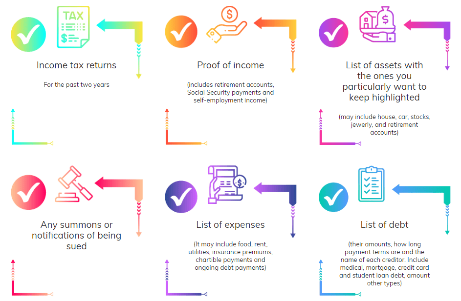 Each financial situation is unique, and it’s possible that bankruptcy isn’t a good or viable solution in your case. Alternatively, it could be an excellent approach. To find out more about what’s possible in your situation, meet with multiple bankruptcy attorneys (preferably at least three). Many offer free consultations. To maximize that time, bring the following: