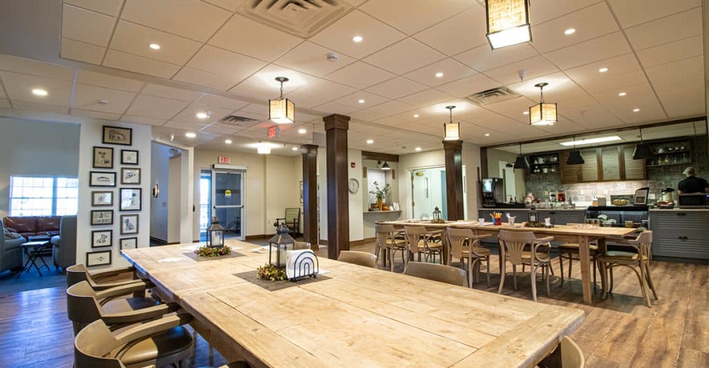 - Independent living units: Housing options range from apartments to single-family homes, all with built-in accessibility features. Independent living units enable older adults to remain self-sufficient without feeling isolated. Resident amenities often include dining, a gym, a salon, and social activities.