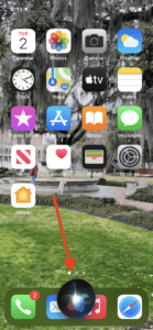 - To activate Siri, press and hold the Side button (on iPhone X and later) or Home button (on iPhone SE and iPhone 8 or earlier). Or you can simply say, “Hey, Siri.” You'll see a multicolored sphere appear at the bottom of your iPhone screen. That means Siri is listening for your direction.