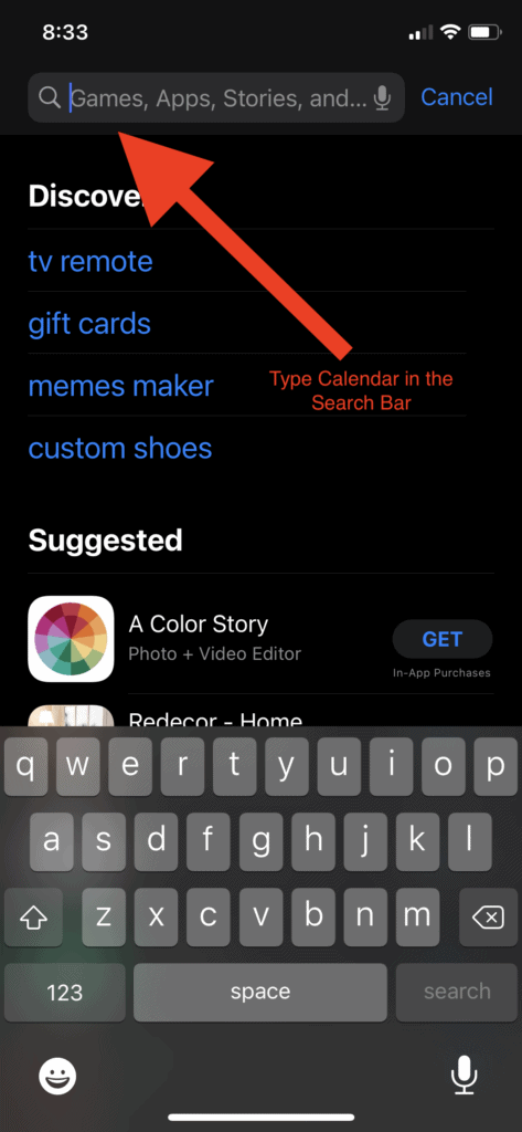 Keep in Mind: There are many calendar apps available in the App Store. Make sure you’re downloading the iPhone Calendar app. It should have a white icon with red letters and black numbers like the one shown above.