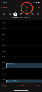 One of the great things about the iPhone Calendar app is the five different views you can take within the app. If you want to look months ahead, or just at the week ahead, it is easy to toggle between views.