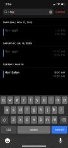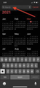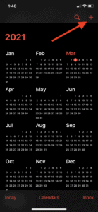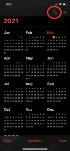 - Tap the magnifying glass icon at the top of the iPhone Calendar app.