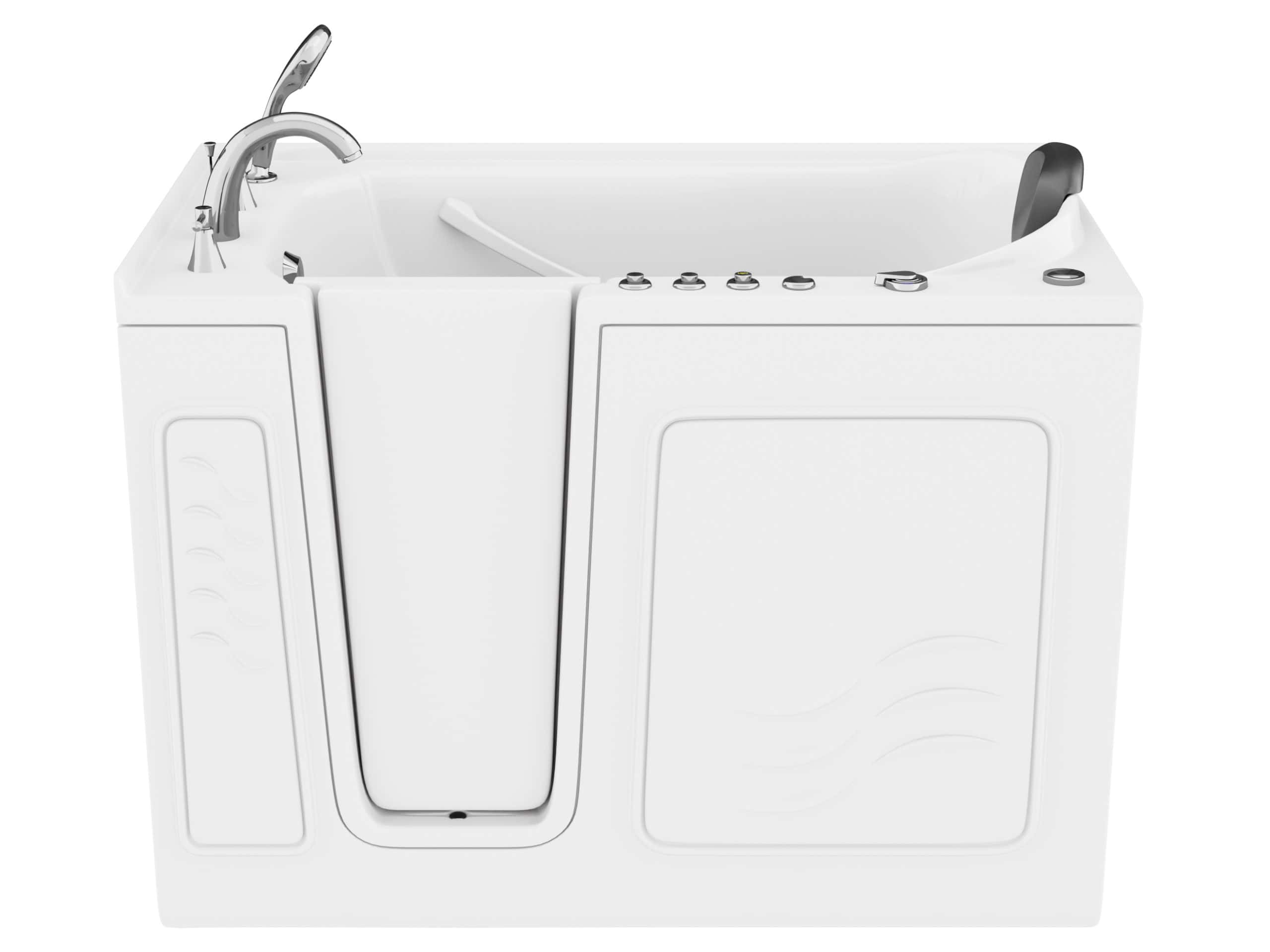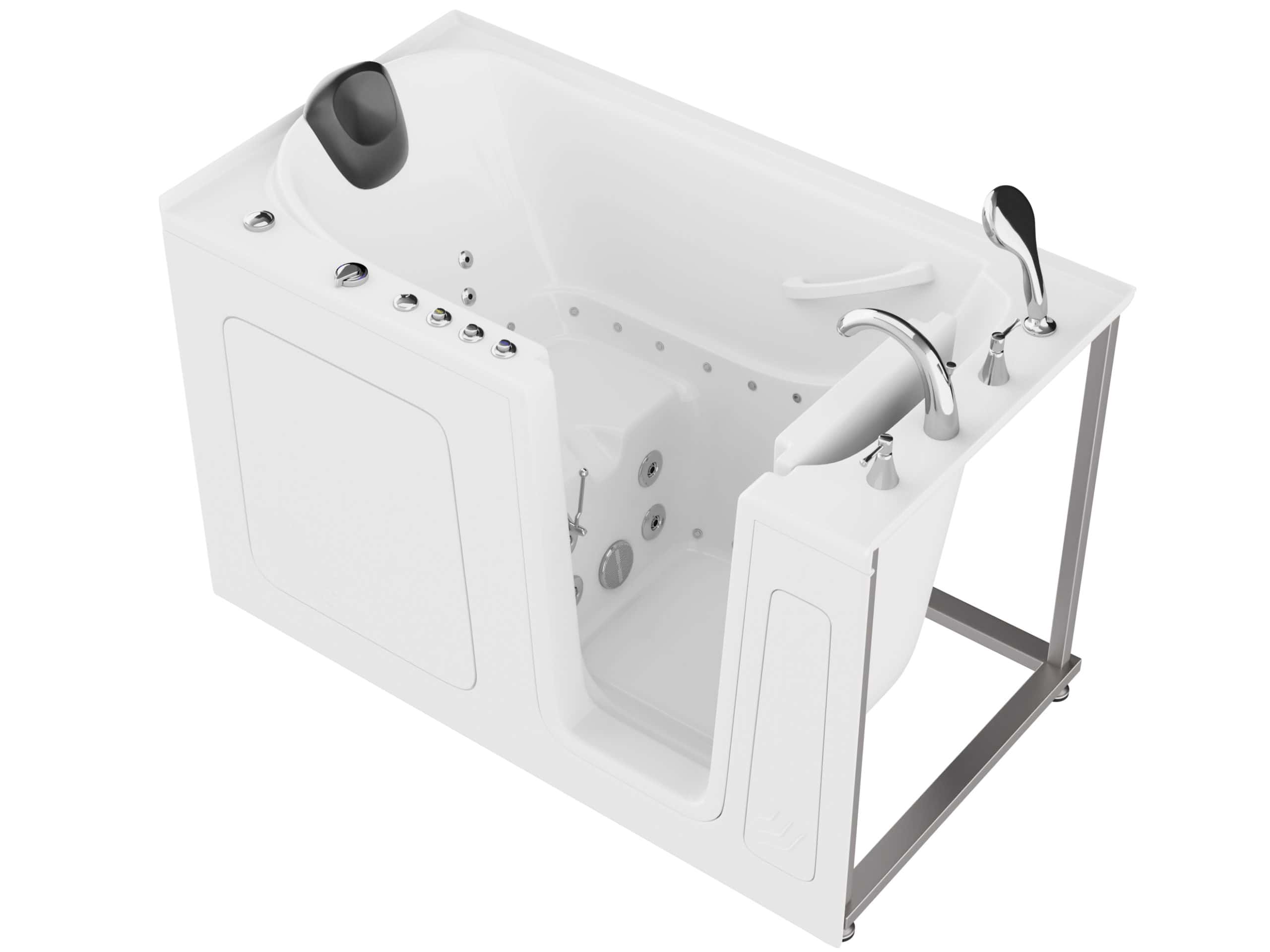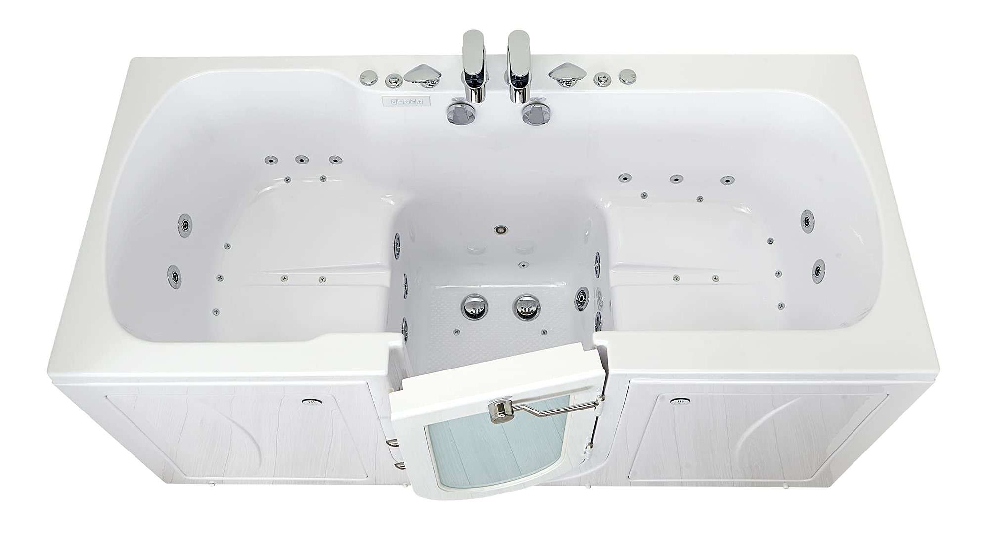 - Standard tubs: These walk-in tubs are often designed for older adults who require minimal assistance getting into the bath. Features include grab bars, hydrotherapy jets, inward-swinging doors, heated seats, and fast-drain technology.
